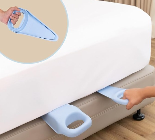A compact and innovative 2-in-1 bed-making tool, lightweight, durable, and featuring a unique collapsible design. It functions as both a mattress lifter and a fitted sheet tucker, streamlining your bed-making routine—perfect for holiday hosting. Designed to lift and hold mattresses while changing sheets, its wide surface ensures stability, easily sliding under heavy mattresses and lifting them up to 3 inches. Compatible with flat bed frames, it’s ideal for making bed changes effortless, even during winter.